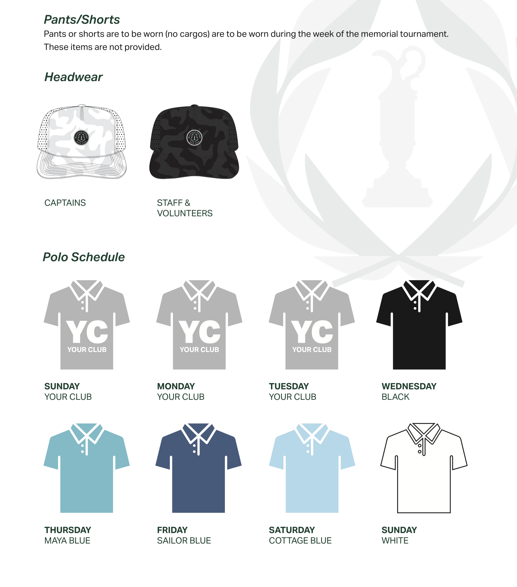 TURF TEAM UNIFORM SCHEDULEVOLUNTEERS WILL BE PROVIDED THEIR TEAM UNIFORMS AND STAFF BADGES DURING CHECK-IN.